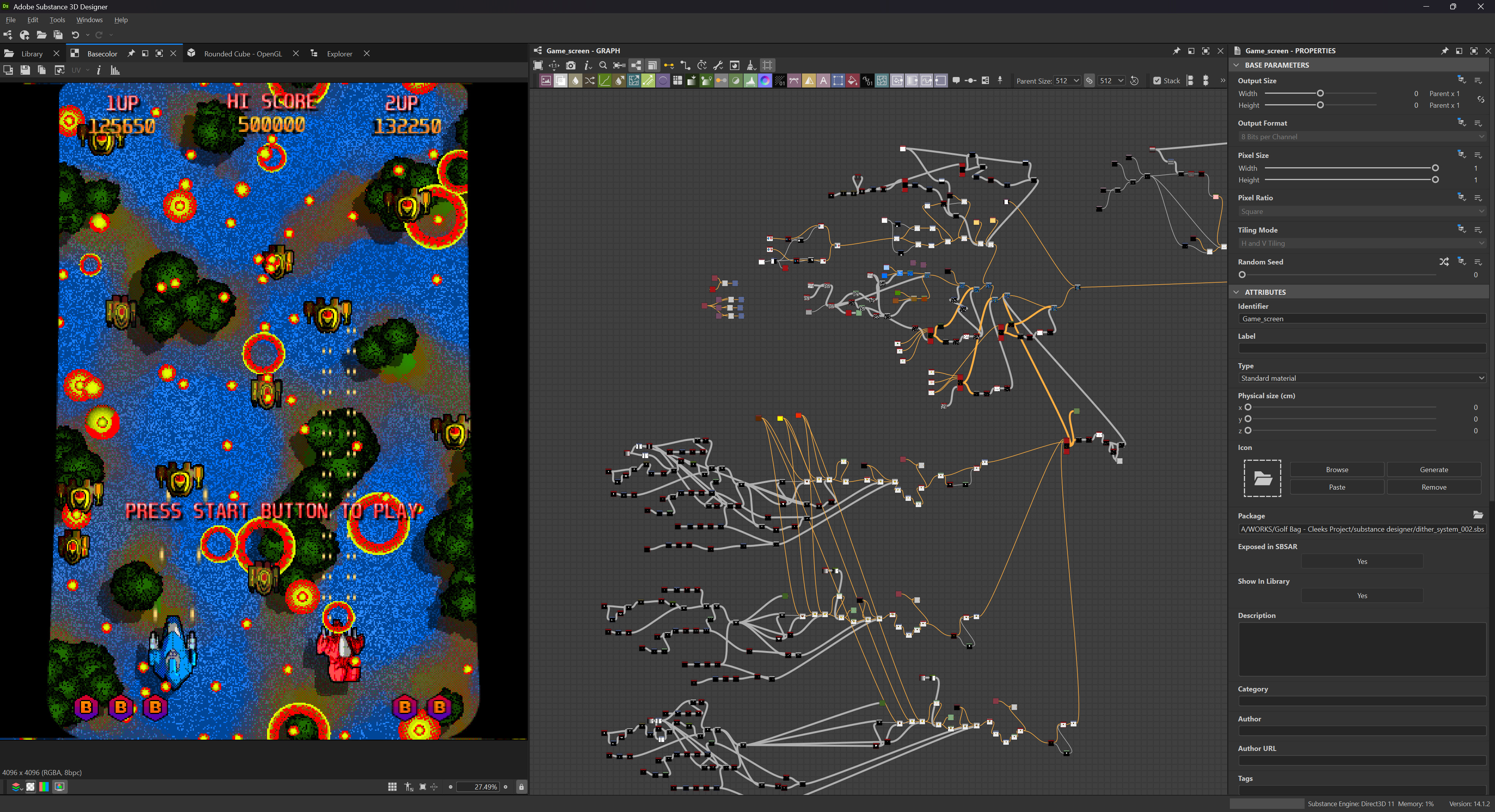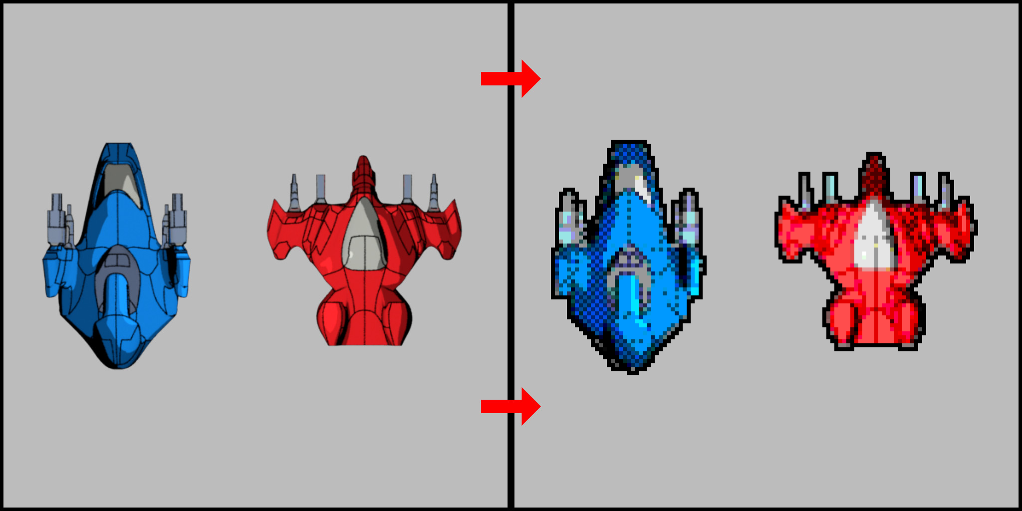 I’ve reverse-visioned a vertical shoot ‘em up game “Aerial Combat”. I procedurally created a randomizable game screen with player and enemy aircrafts, explosions, bullets, landscape and random trees then I pixelated it with a custom-made dither table to make it look like it has color-palette and resolution limitations like all the 16-bit games of the era.