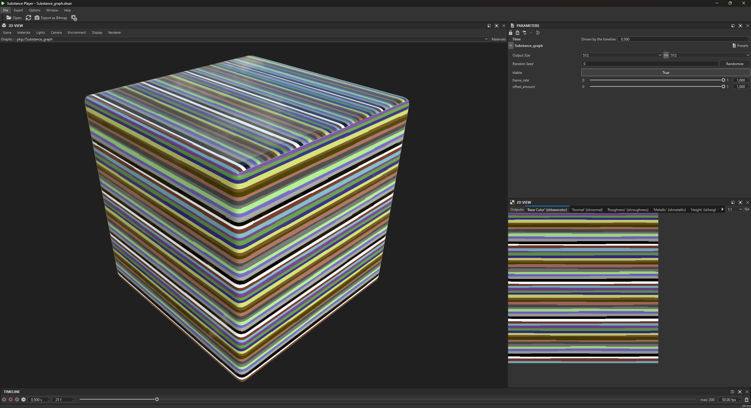 After creating the palette within the Substance Designer, I used the tiling, variating and 1 line row for the exceeded data for the loading bars. And then I assigned $time variable to randomizer to animate the similar effect.